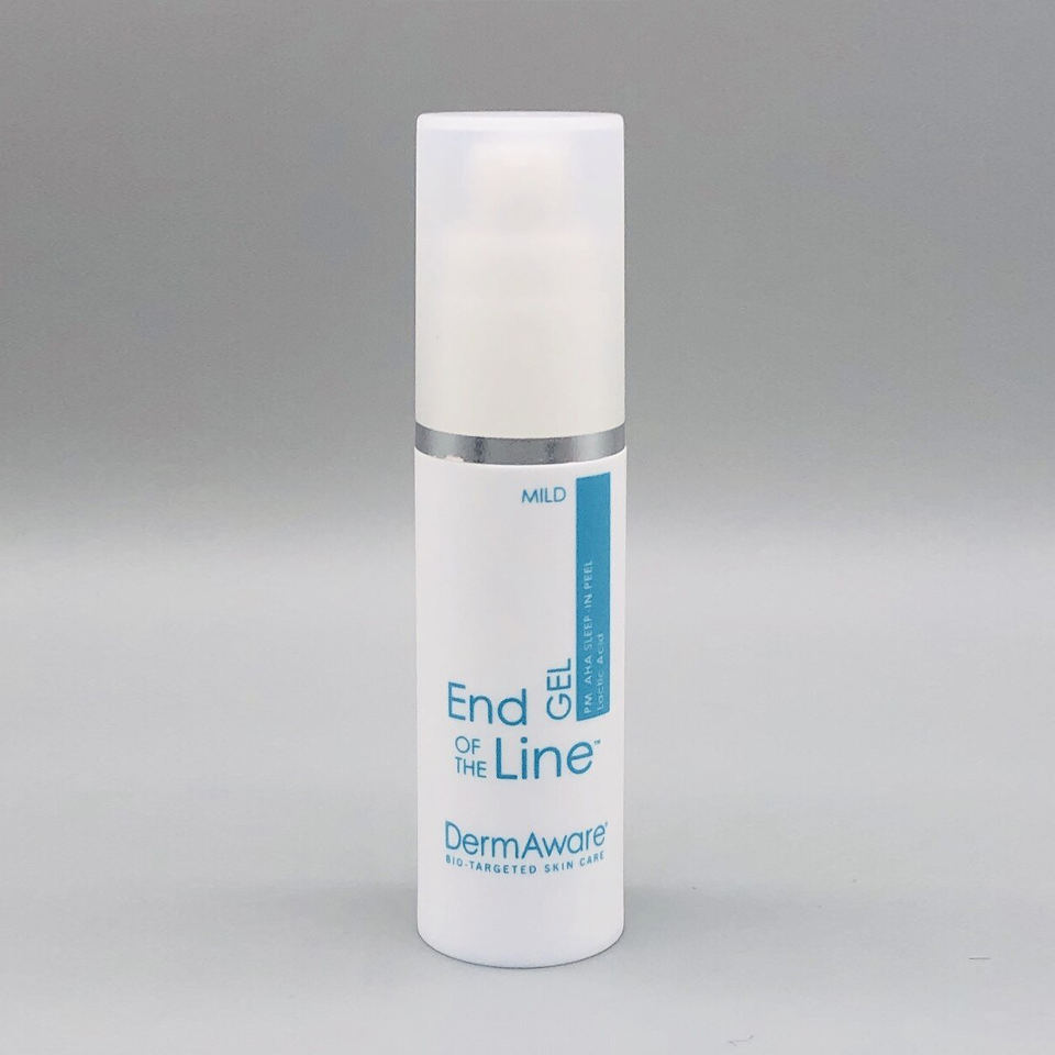 Bio: Exfoliation or peeling jump starts the cellular renewal process. End of the Line is a night time mini-peeling treatment boosted with regenerating peptides to heal the skin at the same time. The results can be felt and seen immediately. Skin feels smooth with refined texture, minimizing the appearance of pores. The top layer of dead skin cells are removed to reveal the smooth, young cells beneath. End each day with End of the Line so that you begin the next day on a clean slate! Begin with the mild strength (5 x concentration) , progress to the strong (10x concentration) and move up to the extra-strong (15 x concentration PLUS retinol) depending on your skin’s tolerance.