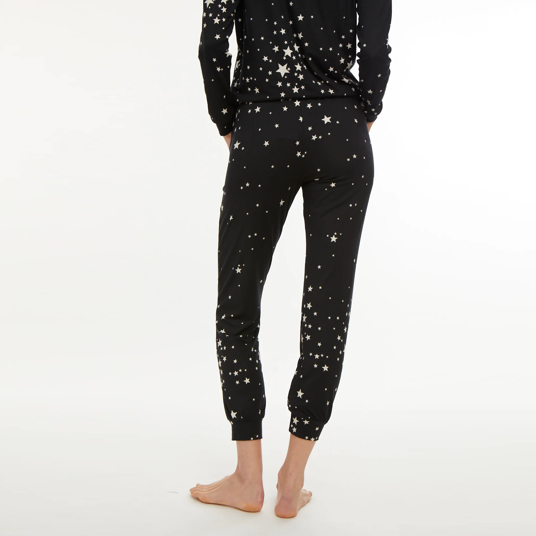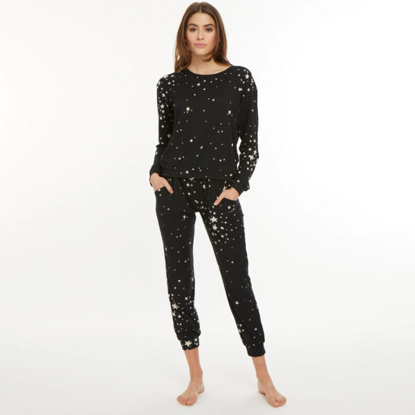 You will fall in LOVE with this buttery soft lounge set. . . so soft you won’t want to get out of it, we promise! The La Jolla set includes both a top and bottom in a black with white star print. The La Jolla Lounge Top features a classic crew neckline, relaxed fit throughout the body and cuffed sleeves. The La Jolla Lounge Bottom has an elastic waist with side pockets.