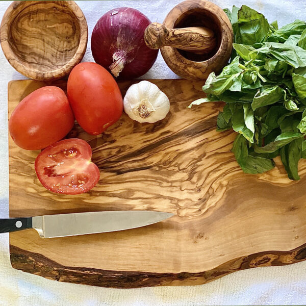 Olive wood is a hard wood making it very dense and durable for everyday use. Olive wood is nonporous so no germs or odors are retained. Made from a single piece of wood, making it smooth and seamless. No two pieces are alike.