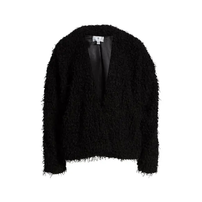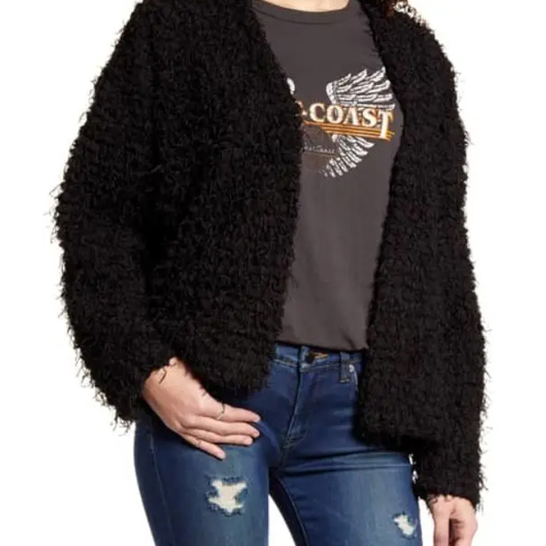 The Olivia Cozy Jacket is femme and cozy while offering an element of plush with soft fringe details. We love this paired with a screen tee and denim for a casual look or dress it up back to a bodysuit and heels for date night!