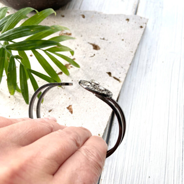 Genuine Crushed pyrite cuff bracelet. It snaps right on to your wrist. Very comfortable!! One size fits all. Made in United States of America