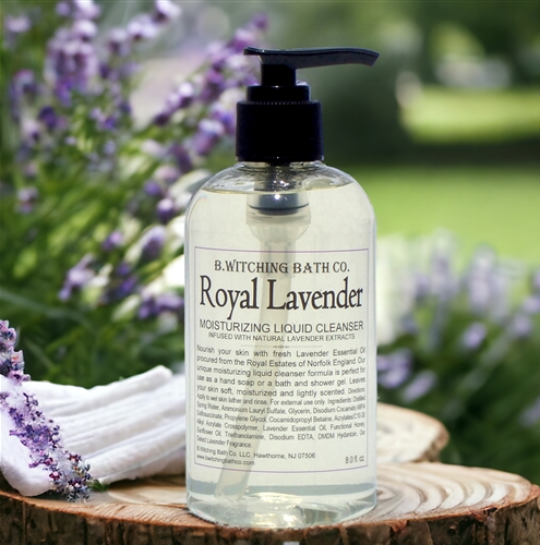 Find tranquility with our signature Royal Lavender essential oil fragrance, bright floral notes of lavender blooming in a field. Our luxurious liquid cleanser formula enriched with nutrients, lavender essential oil and skin conditioning ingredients, gently washes away dirt and germs while leaving skin soft, smooth and lightly scented. It can be used as a luxurious hand soap or bath and shower gel. Leaves skin gently scented with our amazing fragrance.