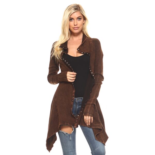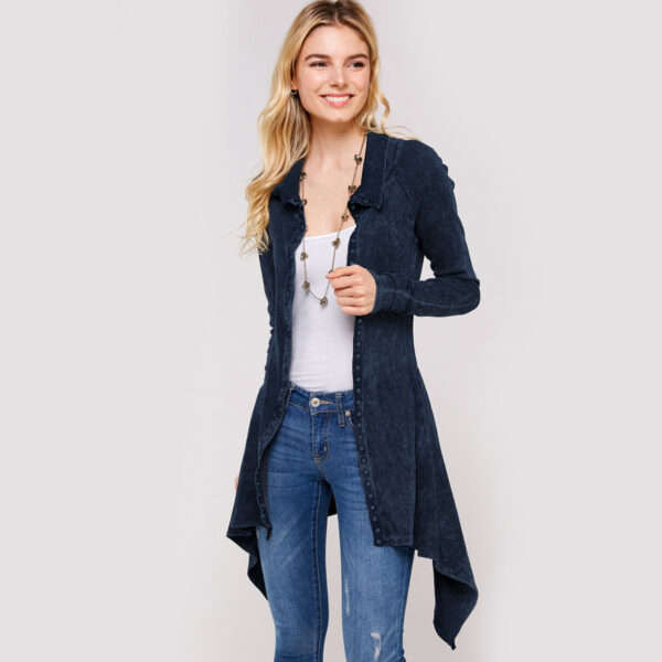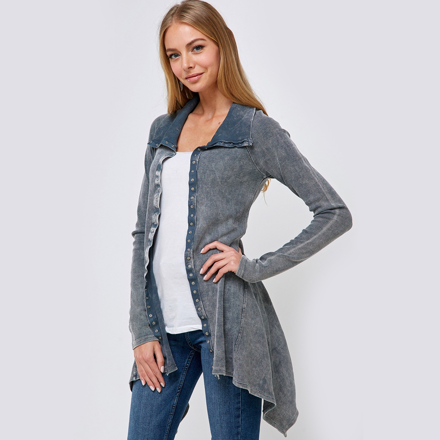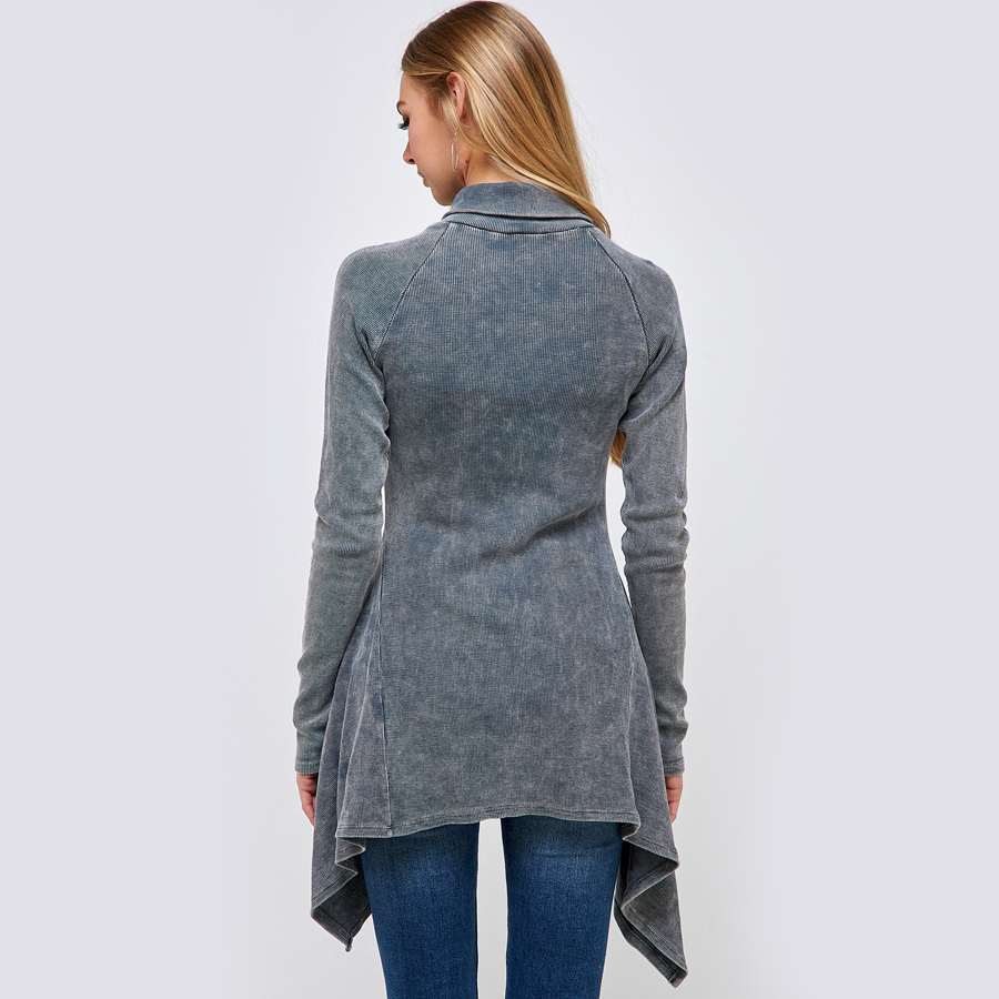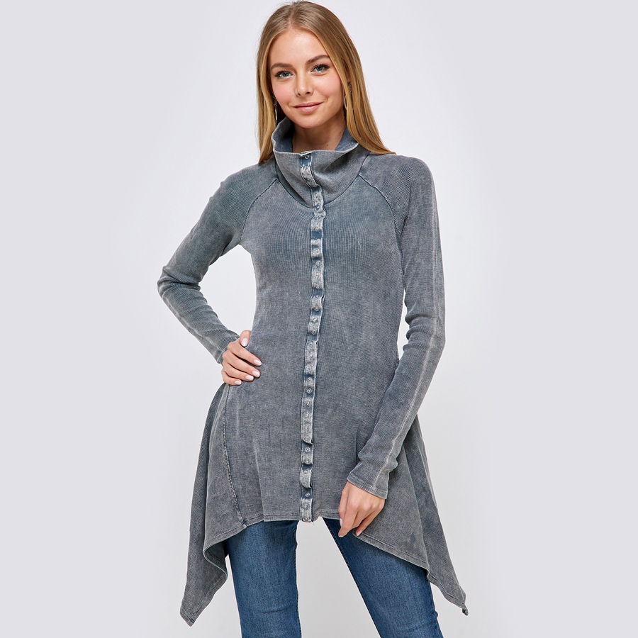 Urban X Soft Mineral washed Long sleeve Thermal Tunic Outerwear with button down collar neck line detail, also worn as a button up turtle neck jacket.