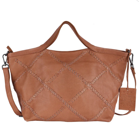 When original craftsmanship and function collide, you’ll find this forever bag which boasts maximum utility. Fully-loaded, signature leather-trimmed interior organizer, top zipper, hidden exterior cell phone pocket, back zipper + intricate, hand-woven front detail. An absolute workhorse of a bag disguised as a relaxed, comfortable shape. See our Collin + Bedford bags for similar versions of this bag.